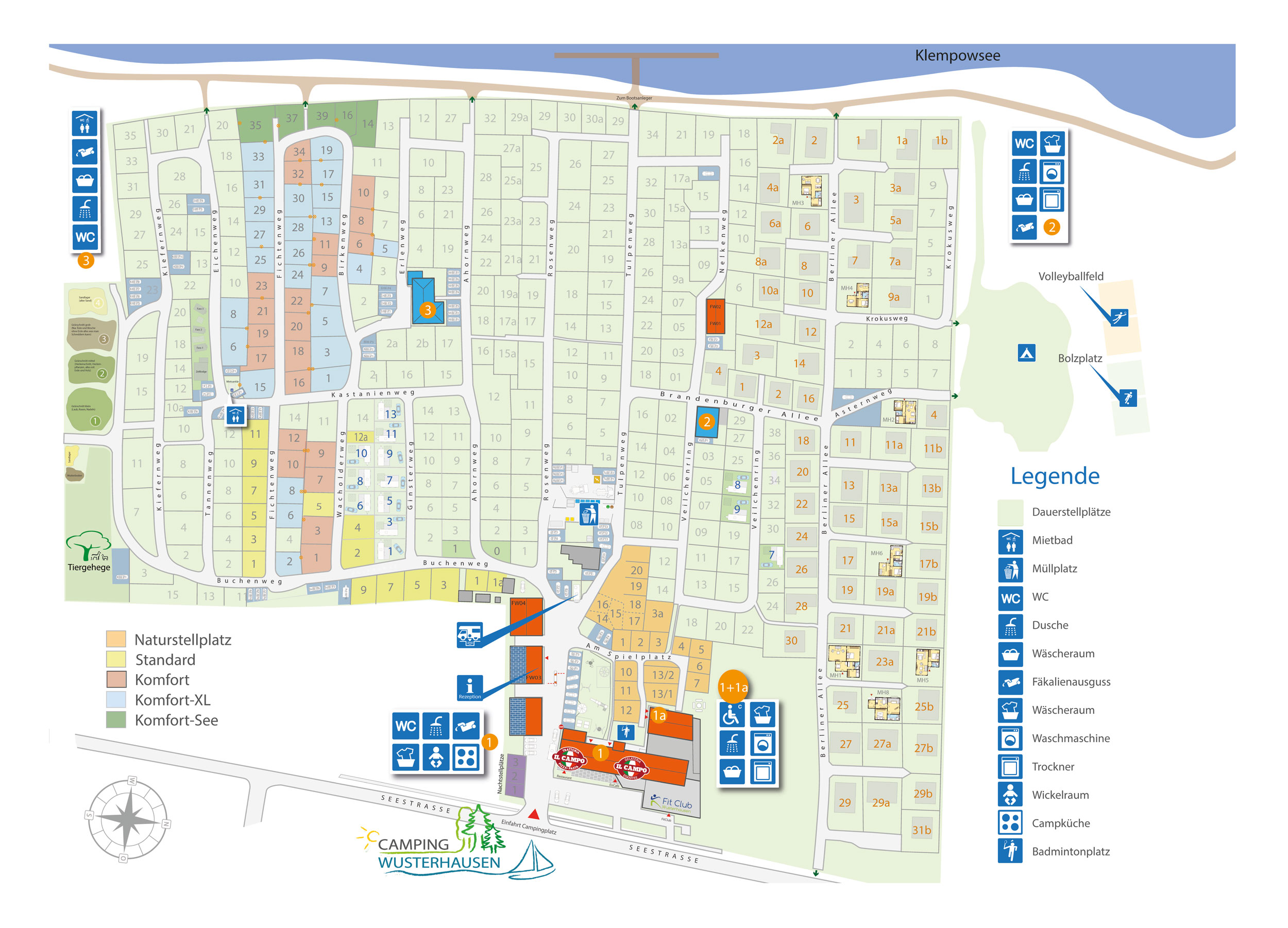 Der Campingplatz Wusterhausen liegt direkt am See. Camping mit Hund ist erlaubt. In Brandenburg, in der Nähe von Berlin & Hamburg.